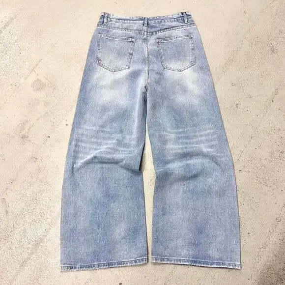 vintage baggy jeans y2k urban wide leg lightwash baby blue faded distress wash denim skater jeans 2000s super baggyDESIREDⁿʸ F/W ‘24 Lightwash Blue Baggy Denimmens 30 (fits like a 34 length)excellent conditionshipping is $8📏measurements📏(model is 6ft 180lbs wearing sz34)waist: 15 inches (30 inch waist)inseam: 30 inchesrise: 14 inchesleg opening: 13 inches DM me to bundle items for a discounted price !!