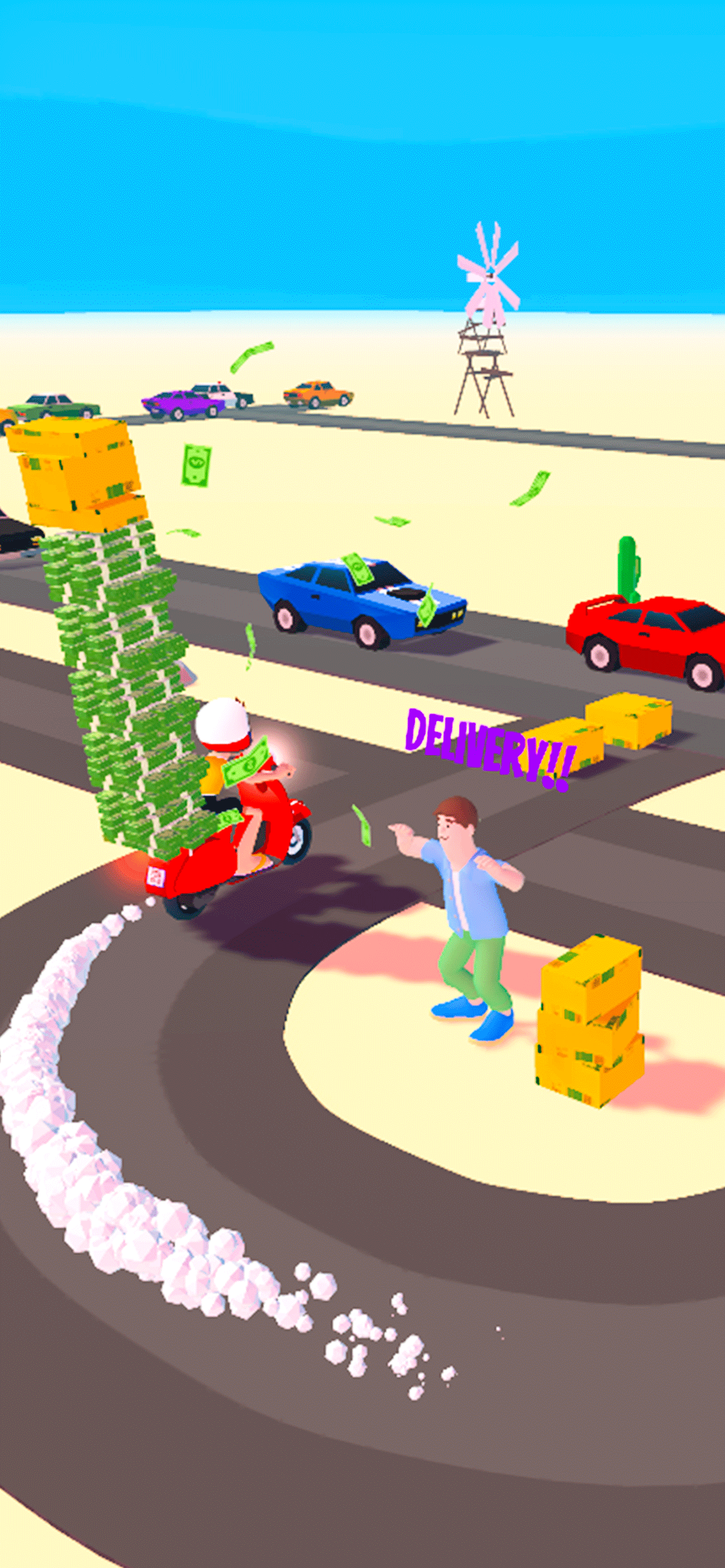 İşte yeni oyun: Siparişleri al ve hepsini teslim et! Eğlenirken müşterilere teslimat yapmak için dokun ve basılı tut.