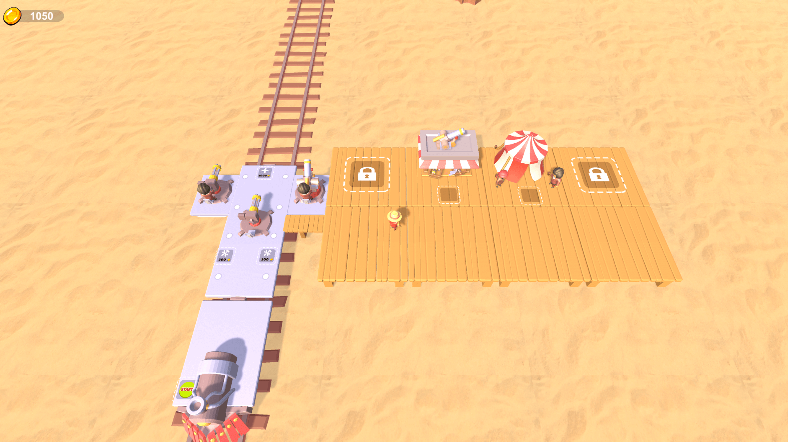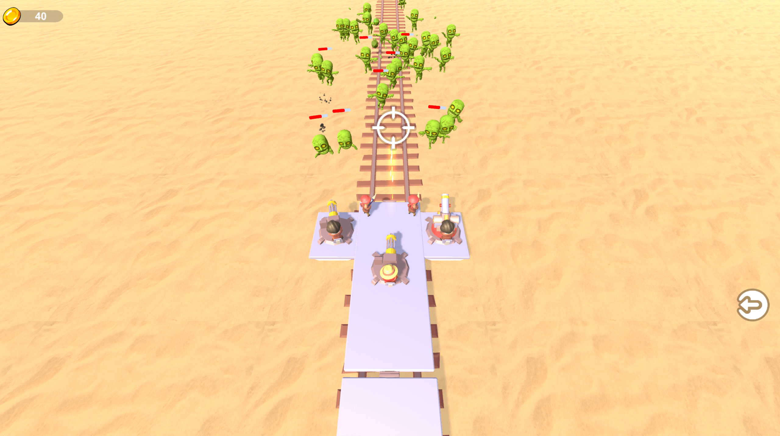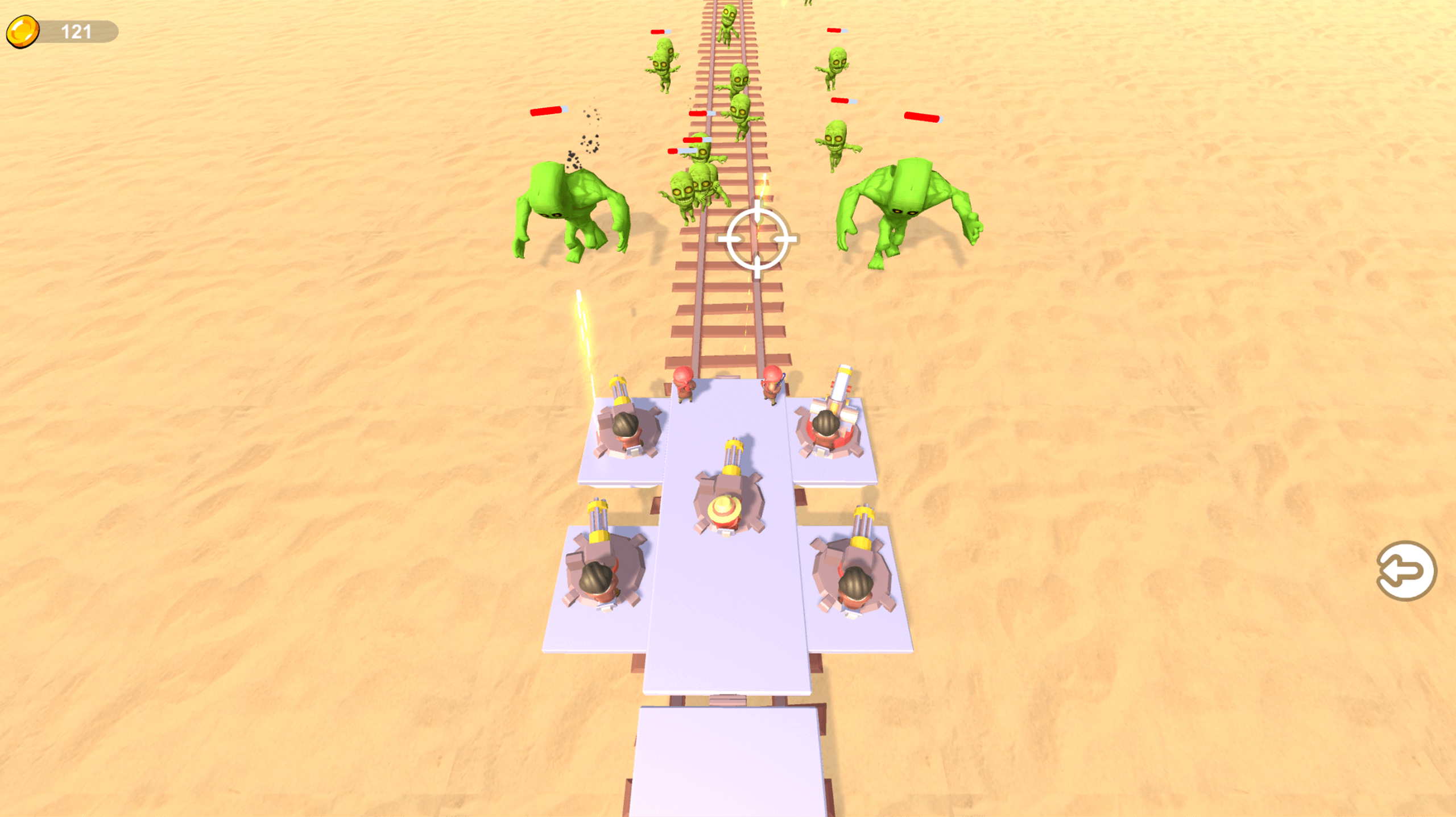 Tren rayı savunma mekaniği: Zombiler raylarda ilerlerken, sen stratejik noktalara yerleştirilen silahlarla onları yok etmeye çalışırsın.
