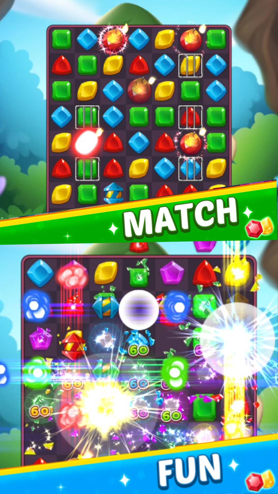 Bir Mücevher Avcısı olarak göreviniz, tahtayı temizlemek ve bir sonraki seviyeye ilerlemek için aynı renkteki 3 veya daha fazla mücevheri eşleştirmektir. Çeşitli güçlendirmeler, güçlendiriciler ve özel mücevherlerle patlayıcı kombinasyonlar oluşturabilir ve muhteşem ödüllerin kilidini açabilirsiniz.